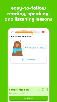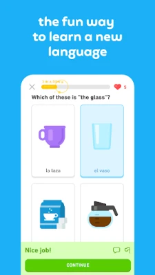 Duolingo не просто преподава, а вдъхновява. С научнообоснована методология, доказана да осигурява дълготрайно запазване на знанията, и уроци, представени като увлекателни игри със забавни герои, вие ще развиете солидни умения за говорене, четене, слушане и писане. Следете напредъка си с игриви награди и постижения, превръщайки ученето в ежедневен навик. Присъединете се към милиони учащи по света, състезавайте се в класациите и бъдете част от глобална общност. Всеки езиков курс, включително испански, френски, немски и други, е напълно безплатен, както и изцяло новите курсове по математика, музика и шах.