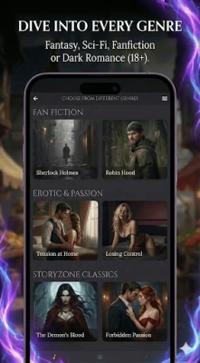 StoryZone ти дава пълна свобода да изследваш безброй жанрове – от хорър и мистерия до ежедневие и фенфикшъни, базирани на любими филми, книги или игри. Избери своя начин на взаимодействие: пълен контрол над сюжета, интерактивни избори с елемент на изненада или динамичен „екшън режим", който движи историята напред с всяка команда. Започни веднага, без никаква регистрация, и се наслади на безпроблемно приключение. С вграден филтър за съдържание, който можеш да активираш или деактивираш, StoryZone е идеална както за тийнейджъри, така и за възрастни. Открий безкрайните възможности да сътвориш история, която само ти можеш да разкажеш.