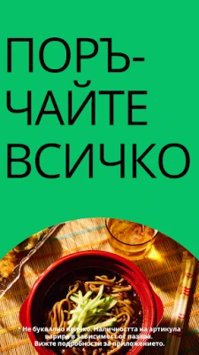 Гладен ли си? Открий любимата си храна от стотици ресторанти и я поръчай лесно до вратата си. Наслади се на бърза и надеждна доставка на всякакви ястия – от домашни специалитети до екзотични изкушения. Твоята следваща вкусна хапка е само на няколко клика разстояние.