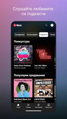 Открийте обширна вселена от музика с YouTube Music – приложението, което ви предлага несравнимо звуково приключение. Потопете се в уникална колекция от изпълнения на живо, креативни кавъри, динамични ремикси и музикални творби, които няма да откриете никъде другаде. YouTube Music разбира вашия вкус, създавайки персонализирани плейлисти и миксове, идеално адаптирани за всеки момент от деня – независимо дали тренирате, релаксирате или се нуждаете от дълбока концентрация. Създайте своя звукова картина с лекота или сътрудничете с други ентусиасти, за да изградите перфектния плейлист. Всички харесани от вас песни, албуми и изпълнители се съхраняват удобно във вашата лична фонотека.