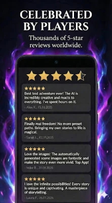 StoryZone ти дава пълна свобода да изследваш безброй жанрове – от хорър и мистерия до ежедневие и фенфикшъни, базирани на любими филми, книги или игри. Избери своя начин на взаимодействие: пълен контрол над сюжета, интерактивни избори с елемент на изненада или динамичен „екшън режим", който движи историята напред с всяка команда. Започни веднага, без никаква регистрация, и се наслади на безпроблемно приключение. С вграден филтър за съдържание, който можеш да активираш или деактивираш, StoryZone е идеална както за тийнейджъри, така и за възрастни. Открий безкрайните възможности да сътвориш история, която само ти можеш да разкажеш.