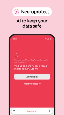 Изживейте интернет по нов начин с Yandex Browser – създаден за бързина, сигурност и комфорт. Забравете за натрапчивите реклами благодарение на безпроблемната интеграция с блокиращи приложения на трети страни, които осигуряват чисто и фокусирано сърфиране. Вашата онлайн безопасност е наш приоритет: мощната система за защита „Protect" активно предпазва личните ви данни в публични Wi-Fi мрежи и ви отдалечава от потенциално опасни или измамни уебсайтове. Когато имате нужда от уединение, активирайте „Incognito Mode", където вашите пароли, търсения и история на сърфиране остават незаписани. А с „Reader Mode" можете да се концентрирате изцяло върху съдържанието, като премахнете всички излишни елементи и оставите само текста и изображенията.